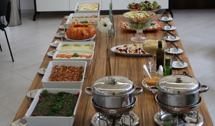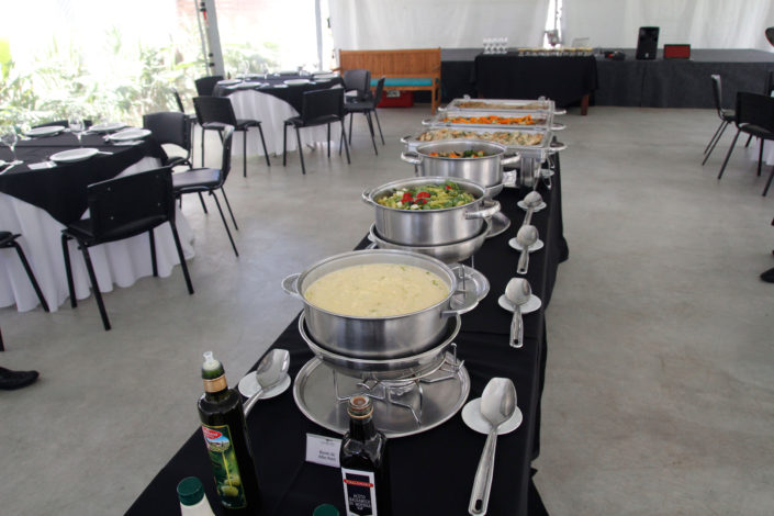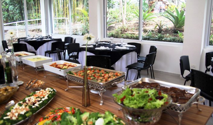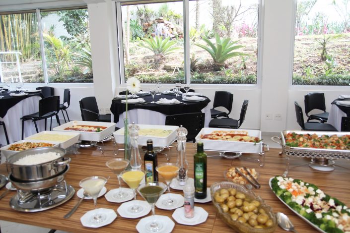 Os cardápios possuem opções desde coffee breaks elegantes até almoços executivos e até menus vegetarianos.