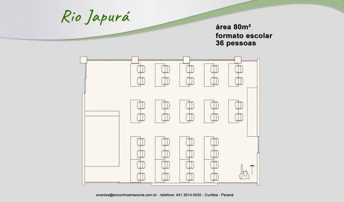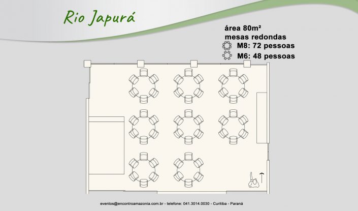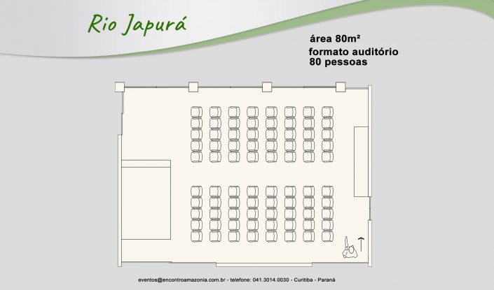 A Sala Rio Japurá é uma sala de porte médio e possui requinte e beleza que poderão ser imprescindíveis para o evento.